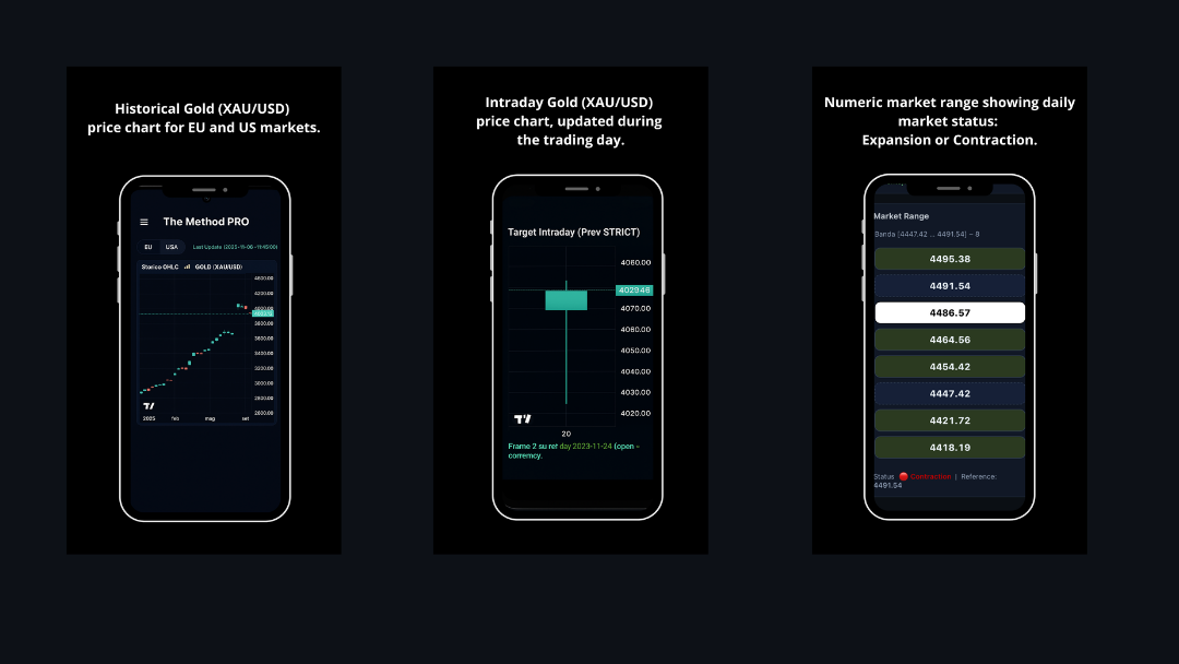 Solutions such as WWG – Gold Intraday allow users to view levels calculated using the proprietary The Method Pro methodology, providing informational support based on data and the observation of intraday market movements.