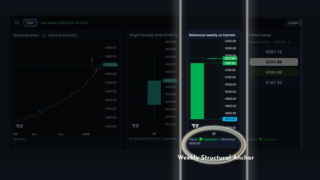 If you want to observe how weekly structure integrates with Market Status, levels, and range within a structured environment, you can explore how The Method Pro implements this comparison.