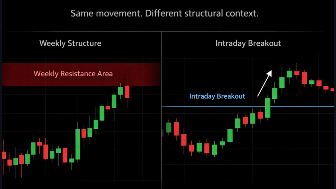 Multi-timeframe analysis exists precisely for this reason: to place intraday dynamics within a higher structural hierarchy.