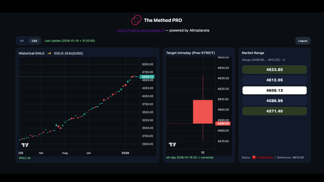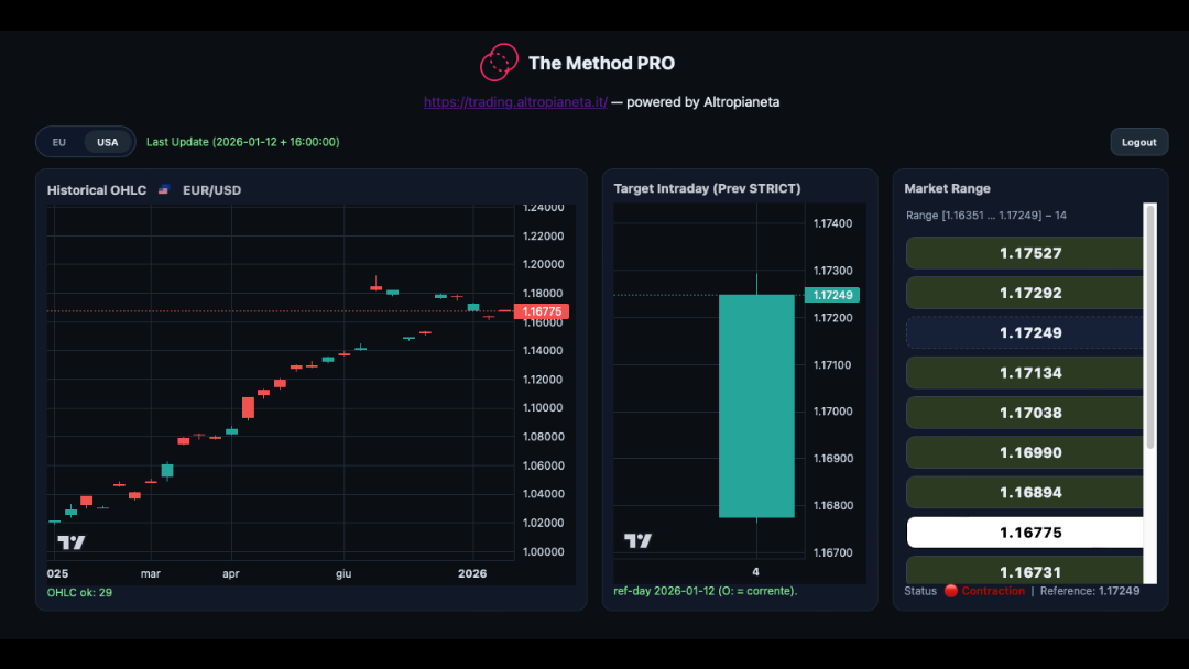 Nota: The Method Pro è un software di analisi e supporto alla lettura del mercato. Non fornisce consulenza finanziaria né indicazioni operative; ogni decisione resta responsabilità dell’utente.